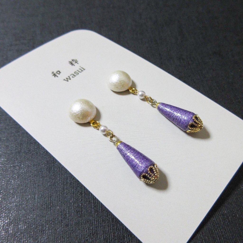 しずく型和紙ビーズとシュガーパールのフェミニンデザイン【しづく/藤色/6-C】